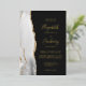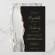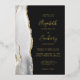 La arista izquierda de esta elegante y moderna invitación a la boda se caracteriza por una pasarela de acuarela gris y blanca recortada con un falso purpurina de oro. El texto del personalizable combina escritura a mano, copperplate y cursiva en Relieve metalizado oro real sobre un fondo fuera de negro. El reverso presenta un diseño de agate gris, blanco y dorado a juego.
