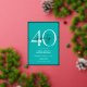 Invitación Con Relieve Metalizado Moderno Mínimo Aqua Cuarenta Guiones Cumpleaños