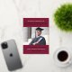 Anuncie su graduado de secundaria con estilo con esta sorprendente tarjeta de invitación de Relieve metalizado 2 foto graduada e invitación de fiesta. La tarjeta de Relieve metalizado dorado y rojo oscuro / borgoña presenta un diseño de tipografía moderno y masculino con dos retratos de tu apuesto grad. El dorso de las tarjetas incluye una invitación a una fiesta de graduación para celebrar la ocasión.