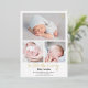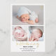 Moderno presentando 3 fotos en blanco negro anuncio de nacimiento de bebé , con un elegante y fresco guión de pincel a mano escrito y puntos de polka en negro y blanco editables en la parte trasera y Relieve metalizado de oro real.
