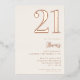 Una invitación moderna de 21 años con una tipografía caligráfica elegante y un diseño minimalista en oro beige y rosa.