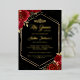Invitación Con Relieve Metalizado Moderno Tiara Floral Oro Rojo Quinceanera