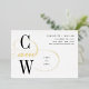 Anuncie su fecha de boda y ubicación en estilo clásico de moda con estos elegantes guarden las tarjetas de fecha con sus iniciales en elegantes letras negras, junto con un adornado swooping "y" en Relieve metalizado dorado con "guardar la fecha" trabajado en el diseño. Sus nombres, fecha de boda, ubicación y detalles adicionales están alineados en la parte superior derecha.