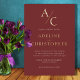 Invitación Con Relieve Metalizado Monograma de oro moderno de Borgoña