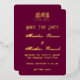 Invitación Con Relieve Metalizado Monograma elegante Borgoña y oro Salven la fecha