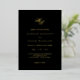 Guión romántico Elegante Monograma Iniciales Boda negro Invitación al Relieve metalizado dorado