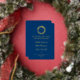 Invitación Con Relieve Metalizado Monograma moderno Boda azul dorado