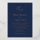 Invitación Con Relieve Metalizado Monograma simple Boda formal azul Rosa oro