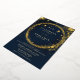 El Celestial Gold Dust Midnight Blue Wedding Invitation es una elección bonita y elegante para parejas que aman el tema celeste, la temática de la luna y las estrellas, el tema de las galaxias. Con un fondo azul profundo salpicado de acentos dorados (¡Relieve metalizado real!), tiene un aspecto soñador y estrellado. Esta invitación es a la vez elegante y moderna, por lo que resulta ideal para un día de boda memorable y mágico. También incluye los monogramas de las parejas.