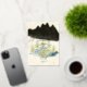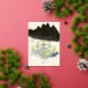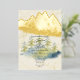 Invitación Con Relieve Metalizado Montañas doradas fondo Árboles verdes y azules