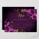 Invitación Con Relieve Metalizado Morado Rosa Floral Oro Swirl Quinceanera
