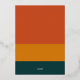 Un diseño audaz y minimalista con la tipografía retro de los años 70 y los modernos bloques de color naranja y azul y un toque de Relieve metalizado dorado brillante