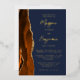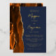 Invitación Con Relieve Metalizado Naranja quemado Agate Navy Blue Modern Script Boda