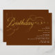 Elegantes invitaciones para fiestas de cumpleaños con acentos de Relieve metalizado dorado en un oscuro fondo naranja. La "fiesta de cumpleaños" y el texto del nombre se incluirán en el Relieve metalizado metálico real, mientras que el texto de los detalles del evento se imprimirá en blanco mate, para facilitar su lectura.