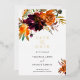 Boda rústica con flores Save the Date con un ramo de flores de color acuático con cálidos tonos tierra de naranja quemado, terracota y burdeos profundos, además de vegetación. A continuación se muestra "Save the Date" en Relieve metalizado real de oro. Esta elegante tarjeta Save the Date con los ricos tonos de otoño es ideal para una boda en otoño.