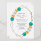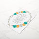 Invitación Con Relieve Metalizado Naranja Verde azulado Floral Geométrica Baby Showe