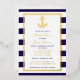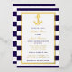 Invitación Con Relieve Metalizado Nautical Anchor Navy Stripe Bridal Shower Real