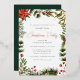 Decorada con exuberante vegetación y un toque de magia de temporada, esta invitación marca la pauta para una memorable celebración de Navidades. Su intrincado diseño botánico despierta una sensación de calidez y unión, lo que lo hace ideal para reunirse con sus seres queridos durante la época más maravillosa del año. Con la opción de personalizar del texto y de los detalles, puede hacer que esta invitación sea exclusivamente suya, asegurándose de que su fiesta Navidad sea una que sea apreciada por todos los que asistan. Invite a sus huéspedes con estilo con esta impresionante invitación a las acuarelas botánicas, y deje que comiencen las festividades.