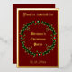 Esta hermosa invitación del Partido de Navidades del Relieve metalizado presenta un diseño de arte digital de una corona circular de Navidades góticos que incluye hojarasca de hiedra de color pálido y verde oscuro entrelazadas alrededor de la corona, bayas envenenadas rojas y bayas de mistletas blancas venenosas sobre tallos con hojas de mistletoe de bonito. Una corona alternativa para Góticos, emos y wiccans. Hay texto personalizado en el frente en un hermoso Relieve metalizado de oro. Hay texto adicional en la parte posterior para que pueda incluir todos los detalles.