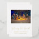 Personalice la parte delantera de esta tarjeta de Navidades agregando un saludo personalizado y el nombre de su familia y añada su mensaje de vacaciones personalizado en la parte posterior de la tarjeta. La carta de los Navidades religiosos presenta una escena de natividad tradicional con "Gloria a Dios" mostrada en un elegante guión de caligrafía de Relieve metalizado dorado. Fácil de personalizar. Felices fiestas!