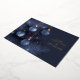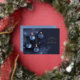 Hermoso árbol de Navidad azul y adornos en un oscuro fondo azul marino, Feliz Navidad con Relieve metalizado dorado en la parte delantera y tu saludo personalizado en la parte trasera. COINCIDIENDO con los artículos de nuestra tienda.