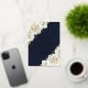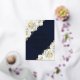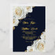 Invitación Con Relieve Metalizado Navy Blue and Gold Roses Floral Wedding