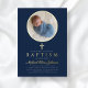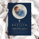 Invitación al Relieve metalizado dorado del bautismo de foto de travesía religiosa azul de la Marina personalizada.