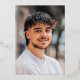 Real silver foil simple graduation invitation with modern calligraphy in color editable navy blue background, personalized photo on the back, elegant and minimalist. Custom it with your own photo and grad party information.