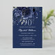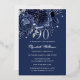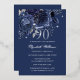 Invitación Con Relieve Metalizado Navy Silver Rose Butterfly 90th Birthday