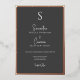 Este diseño es sencillo pero elegante, con el último inicial del novio o la novia en la parte superior. El borde es un Relieve metalizado real de oro rosa, para un toque de clase. Esta invitación, mínima pero impresionante, definitivamente causará una impresión. Creado por Simply Farmhouse Press, forma parte de la suite minimalista elegante y negra de tarjetas bodas en nuestra tienda.