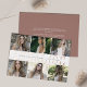 La moderna tarjeta de invitación de graduación incluye seis de tus fotos favoritas alineadas una al lado de la otra en dos filas, con el nombre de tu graduado mostrado en el centro con letras de Relieve metalizado de oro rosa. Personalice su curso escolar y de graduación a través del centro. Añade un mensaje personal y una foto adicional al dorso.