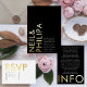 Invitación Con Relieve Metalizado Nombres Ultra Modernos y Negritas 2 x RSVP GOLD