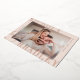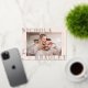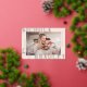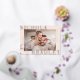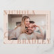 Comparte la noticia de tu compromiso con estos elegantes, salva las tarjetas de fecha con una foto horizontal o orientada al paisaje con tus nombres alineados en las esquinas con letras clásicas, superponiendo ligeramente tu foto y extendiéndose más allá de los bordes del papel para un aspecto moderno. Personalice con dos líneas de texto personalizado a lo largo de los lados para los detalles de su boda, con un campo de texto adicional al revés.