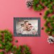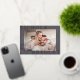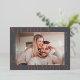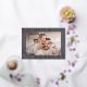 Comparte la noticia de tu compromiso con estos elegantes, salva las tarjetas de fecha con una foto horizontal o orientada al paisaje con tus nombres alineados en las esquinas con letras clásicas, superponiendo ligeramente tu foto y extendiéndose más allá de los bordes del papel para un aspecto moderno. Personalice con dos líneas de texto personalizado a lo largo de los lados para los detalles de su boda, con un campo de texto adicional en la parte posterior.