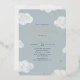 Invitación Con Relieve Metalizado Nubes acuarelas Blue Gray Boy Baby Shower Gold