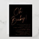 Invitación Con Relieve Metalizado Oh Baby Black y Rosa Gold Script Baby Shower