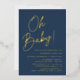 Invitación Con Relieve Metalizado Oh Baby Navy y Gold Script Baby Shower