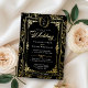 Elevate your stationery suite with this Regency-inspired wedding invitation. This design features a striking black background contrasted by an ornate gold foil floral border and a classic Victorian monogram crest. It is the perfect choice for couples hosting a formal black-tie affair or a vintage-themed celebration in a grand chapel.