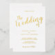 Moderno Script Wedding Invitation Suite: Invitación a la boda Este diseño presenta el título en Relieve metalizado oro real estilo moderno tipo de letra con detalles bodas en Relieve metalizado oro real sans serif moderno tipo de letra sobre fondo blanco.