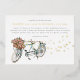 Invitación a una boda romántica y agradable con un Relieve metalizado dorado brillante, con una bicicleta tándem de color acuático y una cesta de flores.