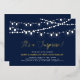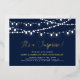 Celebre su día especial con esta moderna y elegante invitación a la fiesta. Este diseño presenta un guión elegante "¡Es una sorpresa! " y luces de cuerda con un tema de color dorado y azul marino. Puede personalizar el texto a cualquier fiesta sorpresa. En mi tienda de Zazzle BaraBomDesign hay más invitaciones al Relieve metalizado y suministros para fiestas.