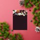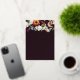Esta elegante y florida invitación a un boda para la cena incluye un guión de caligrafía de Relieve metalizado dorado con un borde superior de flores rojas rojas, naranjas, blancas y rosas rubias con vegetación sobre un fondo borgoñoso oscuro. La parte trasera de la tarjeta es de color burdeos oscuro. ¡Felicitaciones a tu próximo boda! Diseñado por Susan Coffey.