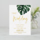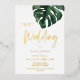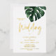 Invitación Con Relieve Metalizado Palm Leaf Tropical Monstera Boda Gold