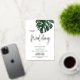 Fije el tono de su boda tropical con esta elegante invitación inspirada en Monstera. Este diseño, con hojas de palmera verdes y follaje de Monstera, evoca un ambiente de isla serena, perfecto para bodas de verano o destino. La tipografía limpia y la paleta verde natural hacen que sea a la vez moderna y refrescante. Ideal para las parejas que buscan una moda y una forma elegante de invitar a los huéspedes a su gran día.