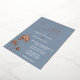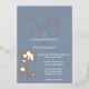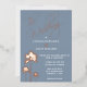 Una elegante pero sencilla invitación a la boda en la playa con un guión de caligrafía dorada subió y motivos de palmeras tropicales en un polvoriento fondo azul. Ideal para bodas con temas costeros y de destino
