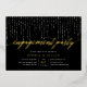 Nuestras elegantes invitaciones a fiestas de compromiso en moda en blanco y negro cuentan con un rico fondo negro con cuerdas de luces blancas en la parte superior, y "fiesta de compromiso" en la tipografía de escritura de caligrafía de Relieve metalizado de oro de moda. Personalice con sus detalles de celebración de compromiso debajo de las letras blancas.