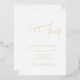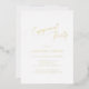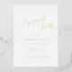 Invitación clásica de Engagement Party con "Engagement Party" en un guión delicado. Todos los elementos de diseño están en Relieve metalizado oro real. Un diseño sencillo sin gráficos, hace de este un diseño elegante y atemporal, perfecto para una fiesta de compromiso formal.