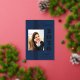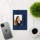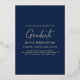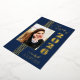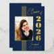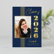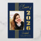 Esta elegante y elegante invitación a la fiesta de graduación de la Clase azul marino de 2025 tiene rayas de Relieve metalizado dorado, marco fotográfico y texto.