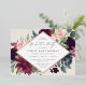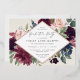 La elegante invitación a la fiesta de graduación floral incluye un marco en forma de diamante de flores acuarelas y follaje en burdeos, violeta, polvoriento rosa, rosa rosa rubor, azul polvoriento y verde sabio oscuro, y terminado con un adorno de Relieve metalizado dorado subió. Personalice los detalles de su fiesta de graduación.