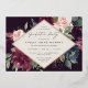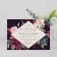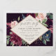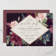 La elegante invitación a la fiesta de graduación floral incluye un marco en forma de diamante de flores acuarelas y follaje en burdeos, violeta, polvoriento rosa, rosa rosa rubor, azul polvoriento y verde sabio oscuro, y terminado con un adorno de Relieve metalizado dorado subió. Personalice los detalles de su fiesta de graduación.